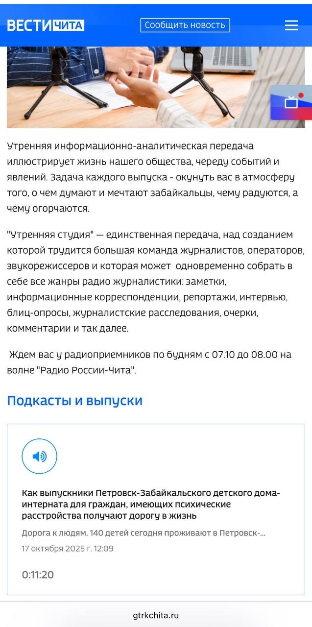 Автор: Лапина Юлия Андреевна, ведущая программ, ГТРК «Чита» (Россия, г. Чита).